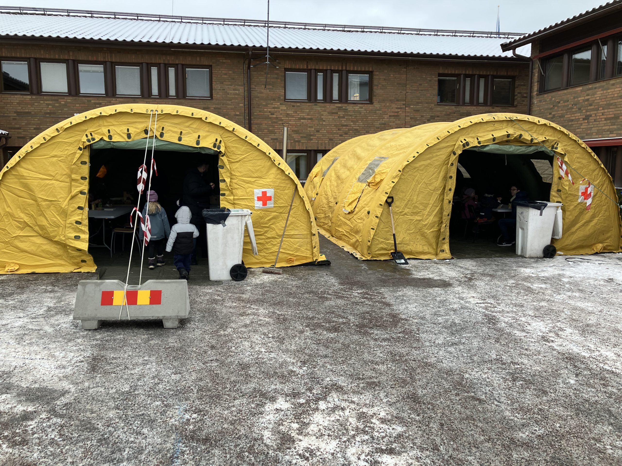 Det blev stundtals långa köer till fältköket och det kalla vädret gjorde att sjukvårdstält 4 med bord och stolar samt värmare sattes upp.