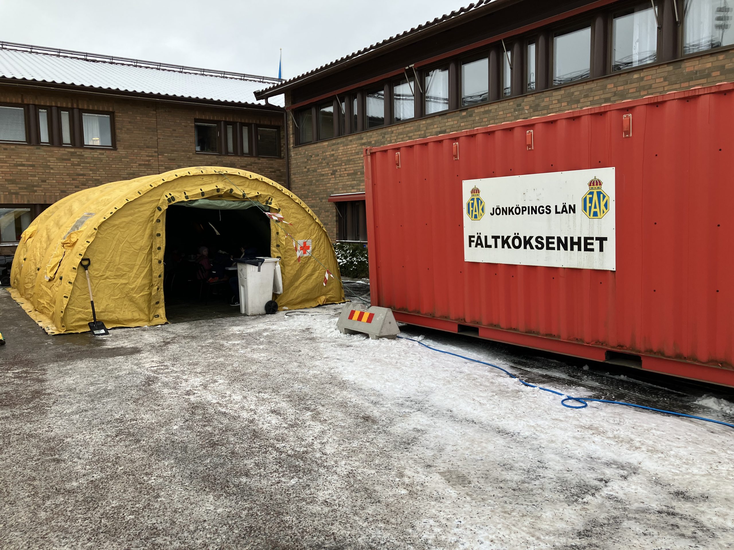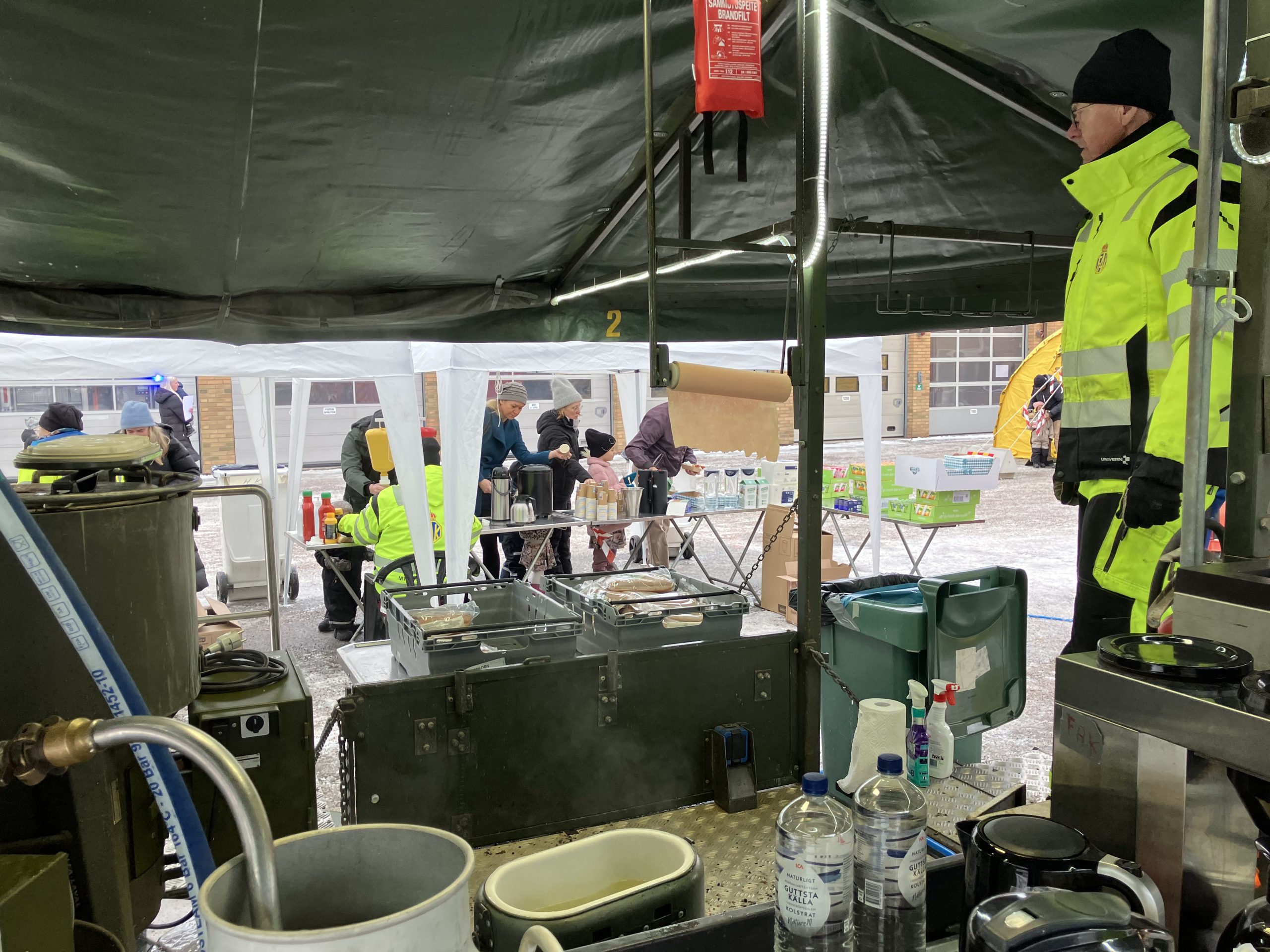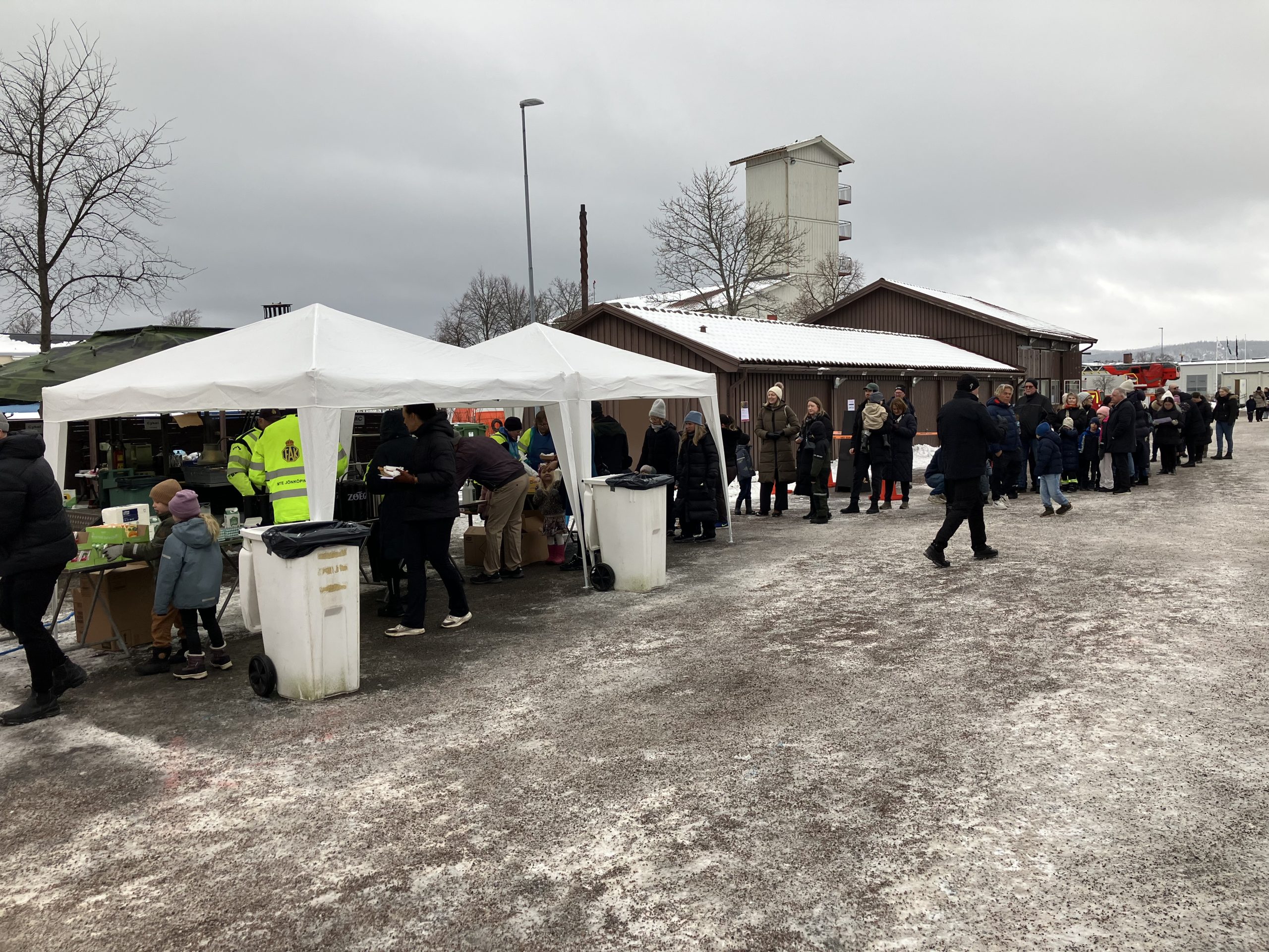 FAK-Fs / RRGns fältkök sattes upp på Räddningstjänsten i Jönköping under sportlovet. Kokt korv med bröd, senap och ketchup samt dryck delades ut under beredskaps- och blåljusdagen. Onsdagen den 11 och torsdagen den 12 februari genomförs beredskaps- och blåljusdag på Räddningstjänsten i Jönköping.