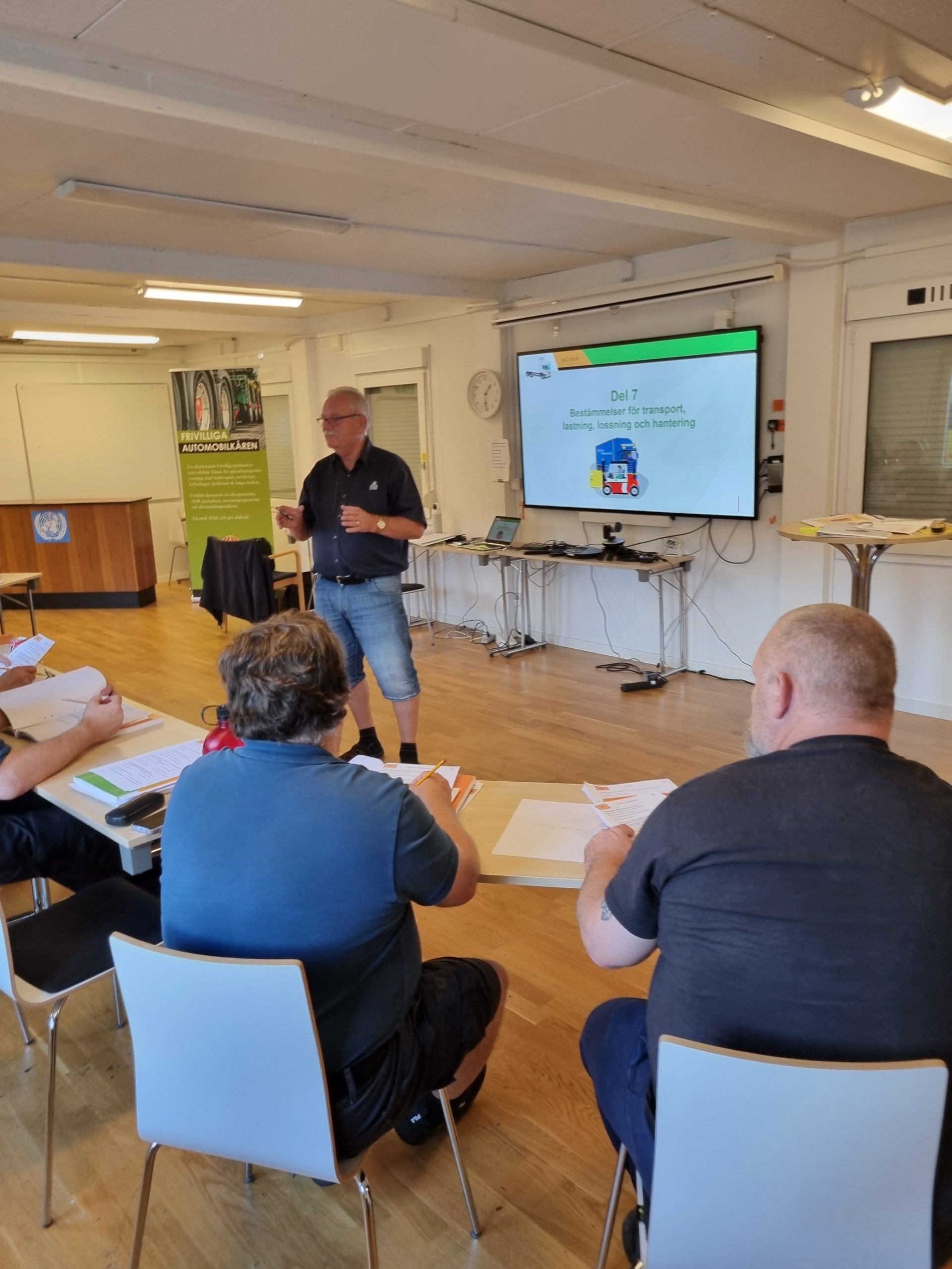 Lördagen och söndagen den 4 – 5 oktober, när första höststormen Amy rasar utanför fönstren, genomförs den näst sista planerade utbildningen hos FAK-F/RRG Jönköping på depån på Moliden. Det är än en gång Lasse Svensson som är instruktör och utbildningen är ADR Tank. Deltagarna är 10 stycken, samma uppställning som genomgick ADR Grund för ett par veckor sedan. Utbildningen flyter på som planerat enligt Lasse, dock har inte alla hunnit genomföra Trafiksäkerhetsverkets prov, men alla är inbokade för tider. Kårchef Mats L
