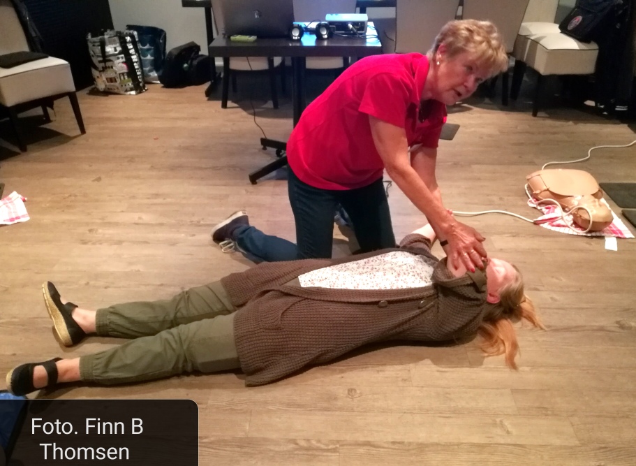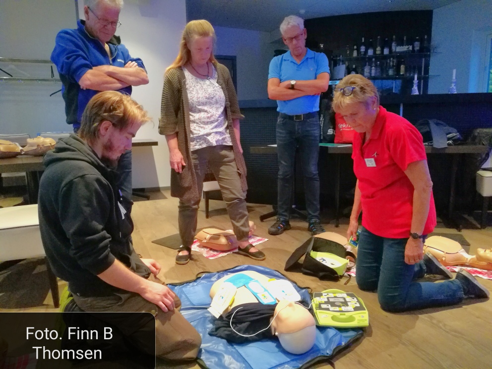 Efter teoretisk genomgång fick vi träna på att göra hjärtmassage och inblåsningar i rätt takt, vilket inte var det lättaste upptäckte en del. Vi fick även lära oss konsten att hantera en hjärtdefibrillator.