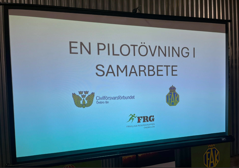 Lördag 11 oktober genomfördes en pilotövning i samarbete mellan Civilförsvarsförbundet Örebro län, FRG (Frivilliga resursgruppen) och FAK Örebro i ett strålande väder.