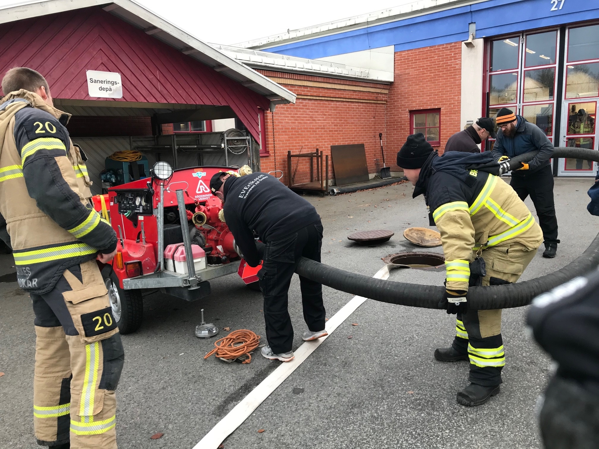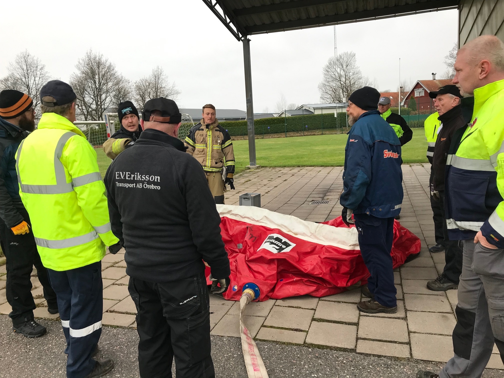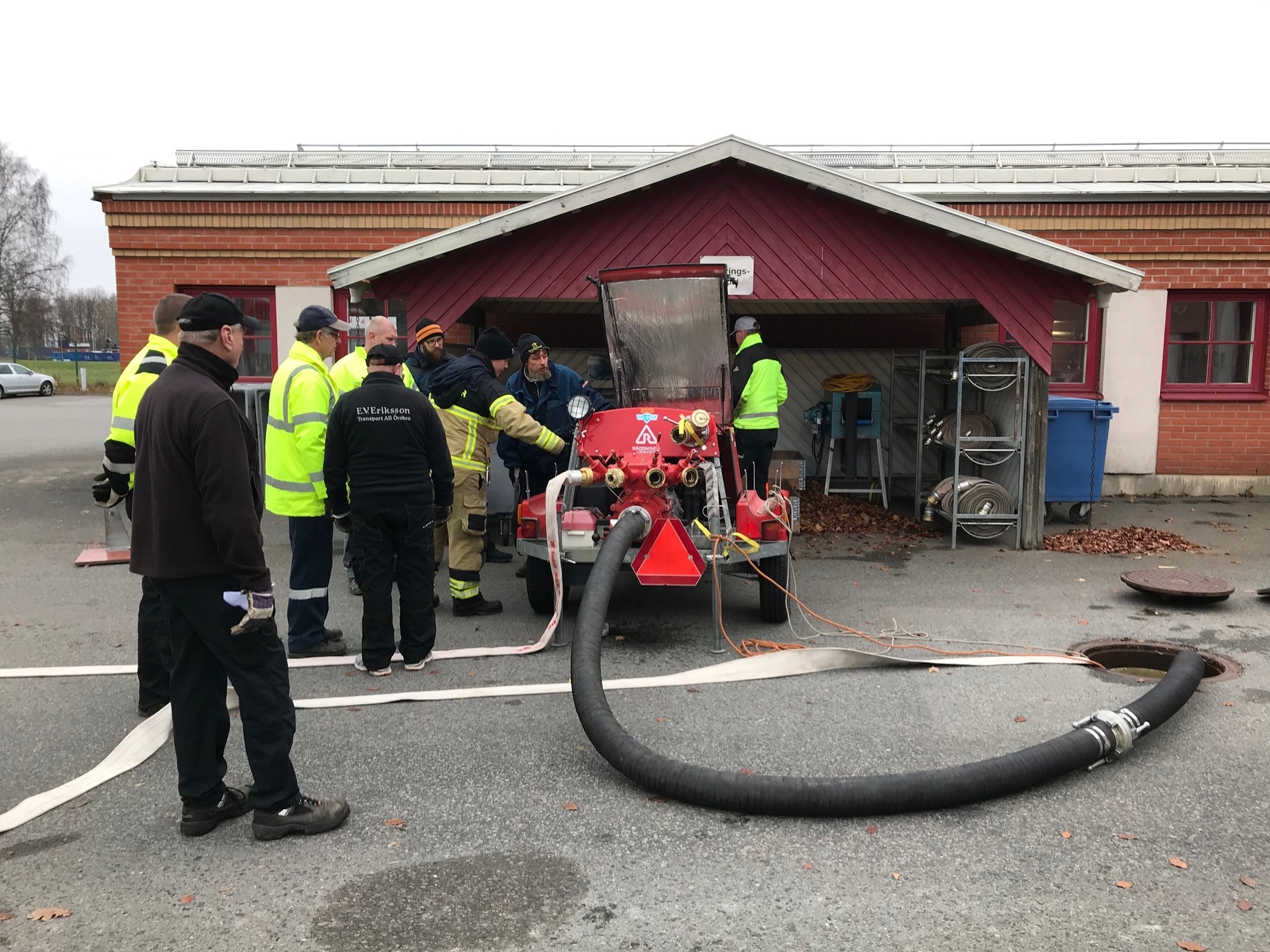 Det genomfördes ett teoripass och en praktiskt övning tillsammans med Räddningstjänsten gällande motorsprutor, slangar, kopplingar och hur ett system kan se ut vid en brand. De 9 deltagarna fick med stöttning och information från ett antal engagerade instruktörer bygga upp ett slangsystem, fylla en mellanbassäng och köra motorsprutan för att fylla denna. Och slutligen också få stå med strålrör och spruta vatten likt hur det skulle kunna gå till vid en riktig brand. Även en titt på hur tankbilar och övriga fordon hos räddningstjänsten ser ut och fungerar genomfördes. Ett stort tack till de mycket trevliga och engagerade brandmännen och insatsledare som ställde upp med kunskap, erfarenhet och intresse!