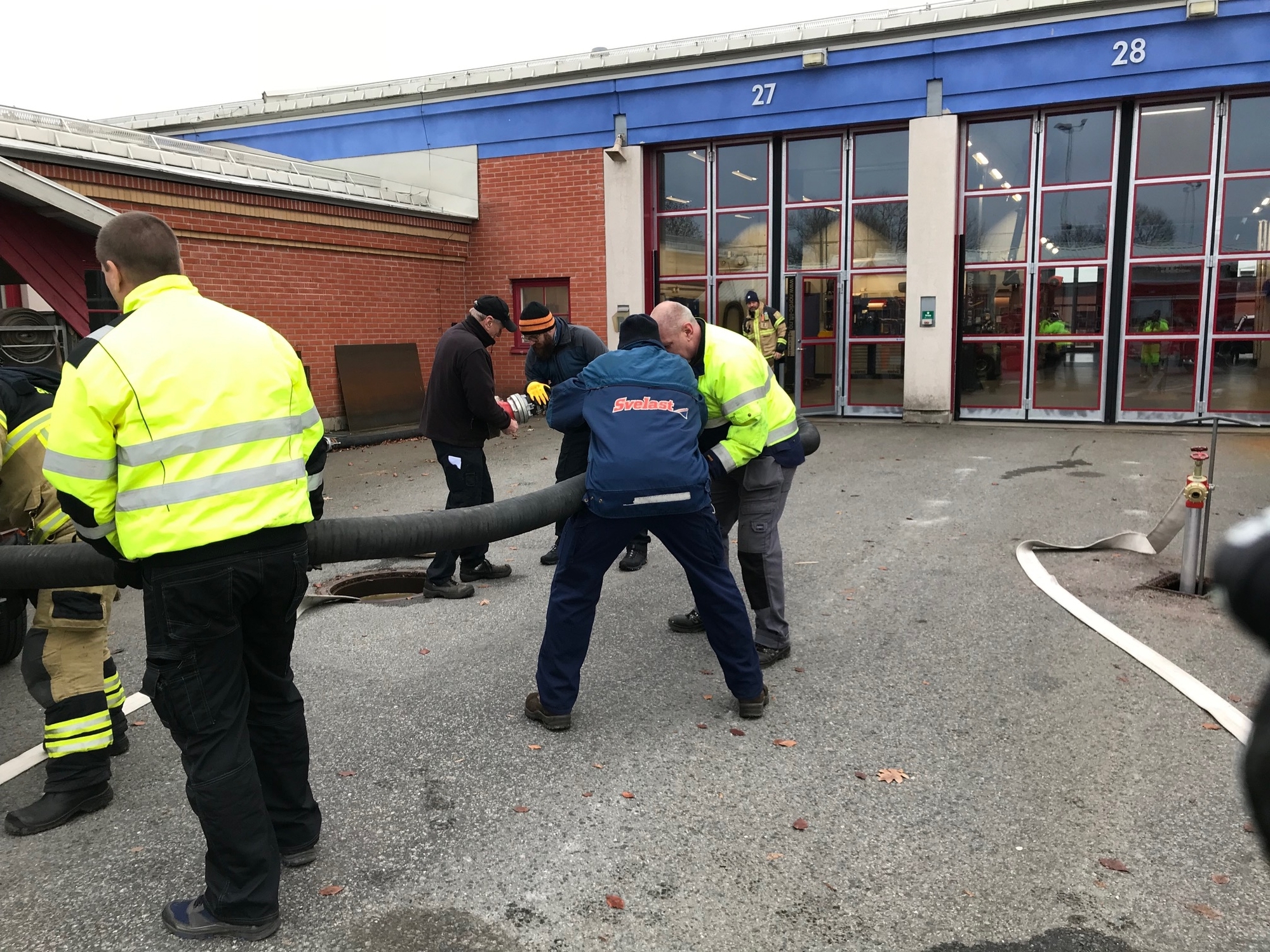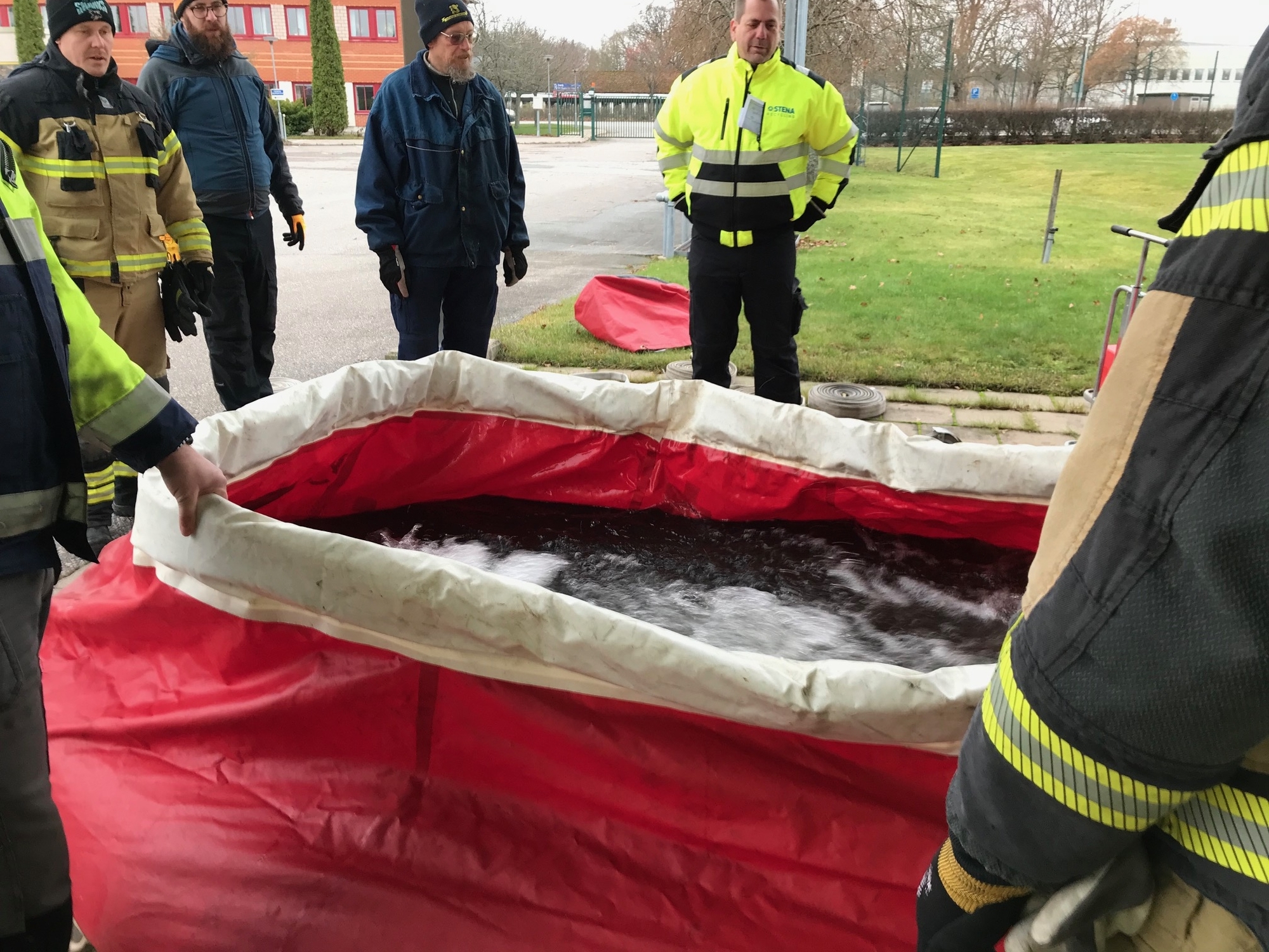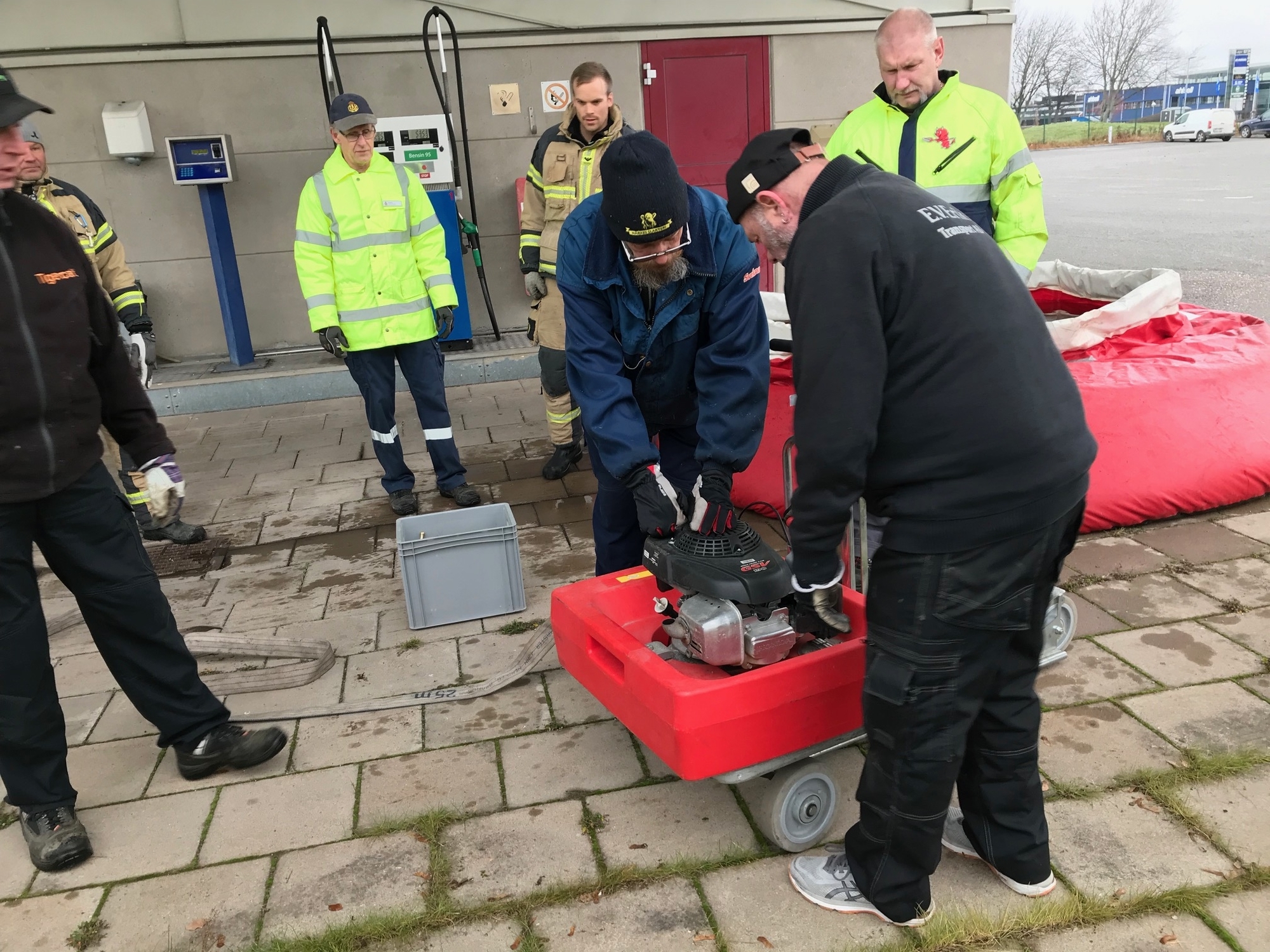 Det genomfördes ett teoripass och en praktiskt övning tillsammans med Räddningstjänsten gällande motorsprutor, slangar, kopplingar och hur ett system kan se ut vid en brand. De 9 deltagarna fick med stöttning och information från ett antal engagerade instruktörer bygga upp ett slangsystem, fylla en mellanbassäng och köra motorsprutan för att fylla denna. Och slutligen också få stå med strålrör och spruta vatten likt hur det skulle kunna gå till vid en riktig brand. Även en titt på hur tankbilar och övriga fordon hos räddningstjänsten ser ut och fungerar genomfördes. Ett stort tack till de mycket trevliga och engagerade brandmännen och insatsledare som ställde upp med kunskap, erfarenhet och intresse!