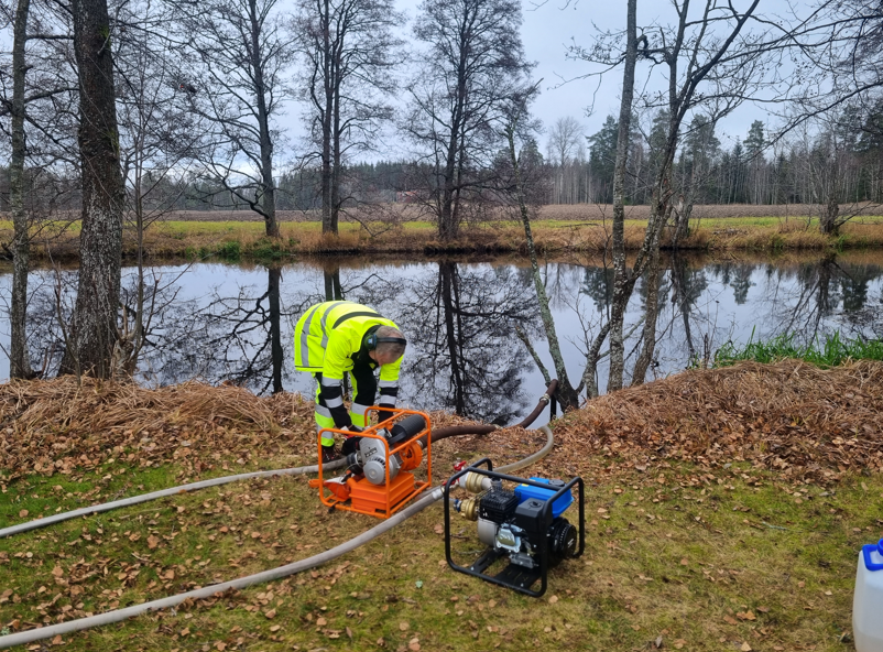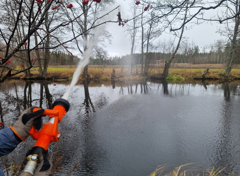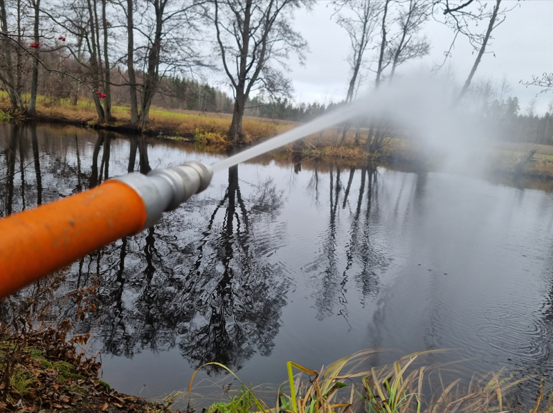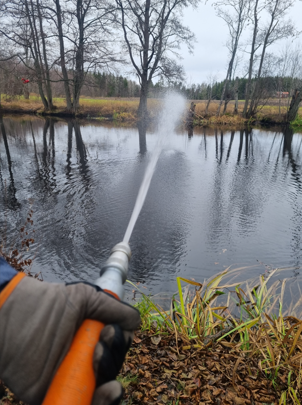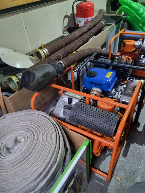 Där kopplade vi på 3 st. pumpar och brandsprutor och övade med dessa.