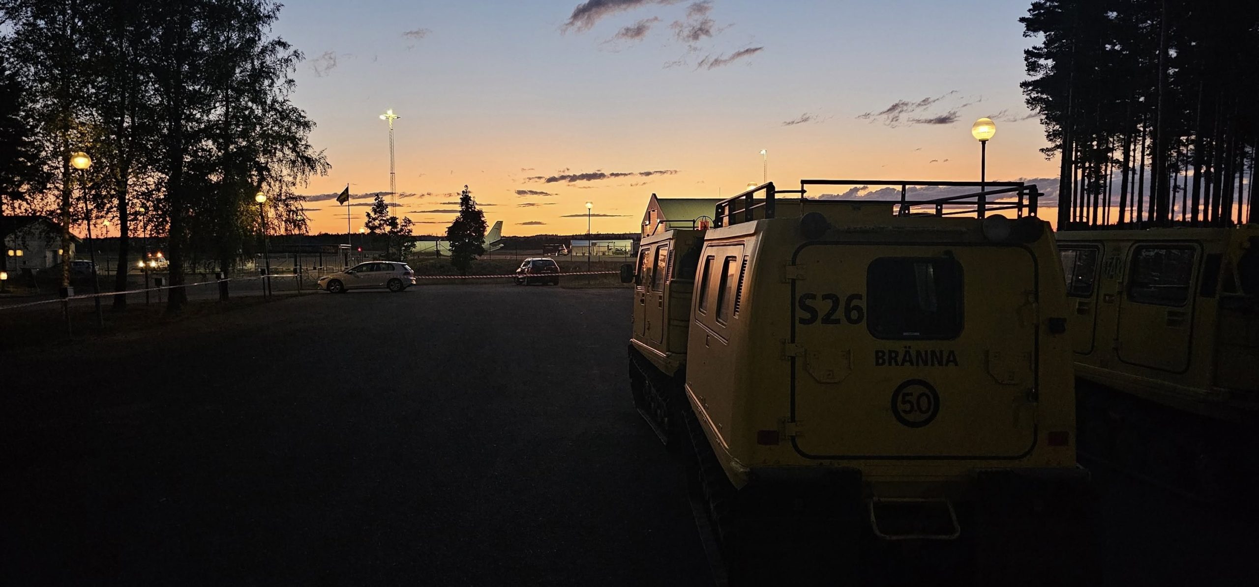 Vi transporterade ungefär 1200st personer i bandvagnarna uppför den skarpa slänten ifrån den stora grus parkeringen till entrén på flygplatsen för ett tryggt avlämnande.